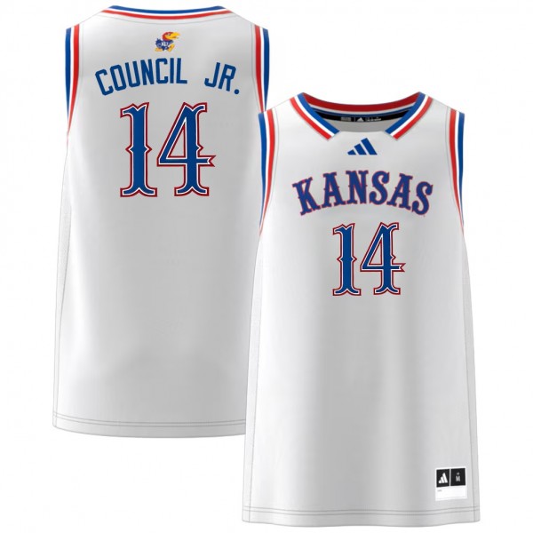 • Men's Melvin Council Jr. White Jayhawks #14 Game Jersey